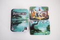 1:プレイヤー同士でどの絵をプレイするか決め、1枚のカードを真ん中に上むきにして置き、残りのカードはプレイする人数で等分し、それぞれのプレイヤーは自分の前に手持ちカードの束を下向きに置きます。