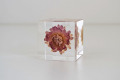 植物の美しい瞬間をとらえて、4cm角の透明のアクリルキューブに封入したウサギノネドコのSola cube。