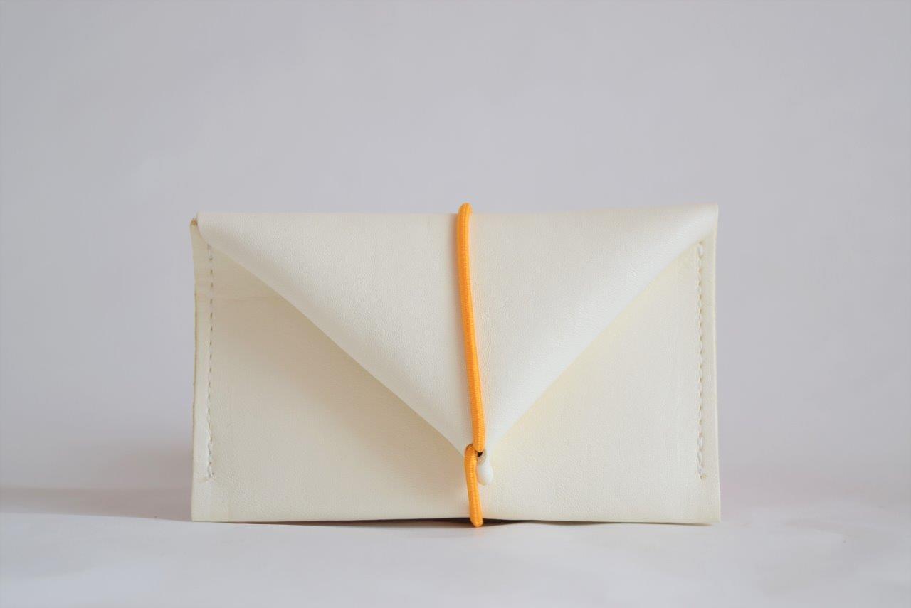 使い方はとてもシンプルで、ゴムひもでとめる革のお財布です。